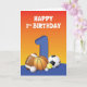 Accueillez un joyeux 1er anniversaire à n'importe quel garçon que vous connaissez avec cette carte qui présente un assortiment de boules de sport sur le devant. Un garçon qui joue adorera sûrement avoir cette carte quand il en aura un.
