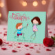 Célébrez l'amour avec cette carte de la Saint Valentin pleine de charme avec un garçon surprenant une fille avec une fleur. L'adorable illustration capture un moment doux et romantique, parfait pour exprimer vos sentiments. Une carte bien pensée pour partager votre amour le jour de la Saint-Valentin.