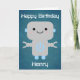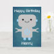Éclairez l'anniversaire de n'importe quel enfant avec cette jolie carte de robot de dessin animé personnalisée ! Personnalisez avec vos propres détails, y compris le nom de l'enfant sur le devant et l'âge à l'intérieur.