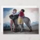 Ce dessin présente un tableau de l'artiste espagnol Francisco Goya (1746-1828). Elle montre deux jeunes garçons qui jouent avec un chien mastife dans un paysage rural. Un mastiff est une race de chien grande et puissante : ils ont généralement un manteau court, une longue queue basse et de grands pieds. Les mastiffs ont toujours été des chiens de garde, protégeant les maisons et les biens, bien qu'ils aient également été utilisés comme chiens de chasse. L'oeuvre originale a été peinte par Francisco Goya en 1786.