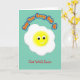 Une carte de voeux amusante avec un visage sur une illustration d'oeuf frit et un graphique texte en rouge bleu et jaune "Gardez votre côté ensoleillé". Montré ici comme une carte get well mais n'hésitez pas à changer l'accueil à l'un de votre choix.