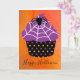 Halloween cupcake mignon avec une araignée noire. Couleurs de thème noir et orange. Thème d'araignée violette mignonne.