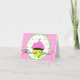 Gâteau cupcake au chocolat avec glaçage rose et bougie bleue sur fond vert et blanc avec des points de polka roses. Joli fond rose clair avec des points de polka géométriques rose pâle. Merci est écrit en jolie écriture noire. Laissez un message à l'intérieur ou personnalisez. Le verso comporte des ballons colorés. Œuvre et conception originales © TamiraZDesigns.