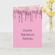 Carte Gâteau d'anniversaire à la glace rose avec gouttes