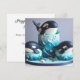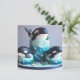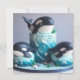 CARTE D'ANNIVERSAIRE POUR ENFANTS À THÈME BALEINE ORQUE NOIRE ET BLANCHE AVEC GÂTEAU À ÉTAGES. TEXTE COMPLETEMENT MODIFIABLE AU VERSO.