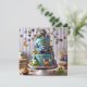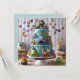 POUR L'ENFANT QUI AIME LES PERSONNAGES DE MONSTRES - UN GATEAU D'ANNIVERSAIRE AMUSANT À PLUSIEURS COUCHES SUR LE DEVANT DE LA CARTE. COPIE TOTALEMENT MODIFIABLE AU VERSO.