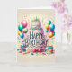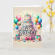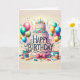 Un design d'anniversaire doux avec un gâteau, des ballons et d'autres choses festives.