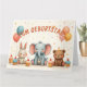 Ein zauberhaftes Geburtstagsmotiv mit einem fröhlichen Elefanten, einem niedlichen Hasen und einem lachenden Bären - umgeben von Ballons, Cupcakes und Konfetti. Dieses Bild fängt die bonté Magie, Freude und Freundschaft auf liebevolle Weise ein.