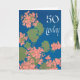 Une jolie carte d'anniversaire de 50ème, avec des géraniums rose saumon sur un arrière - plan bleu profond et des lettres blanches. À partir d'un design imprimé à l'écran par Judy Adamson, vous pouvez personnaliser le message intérieur si vous le souhaitez.