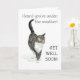 Une carte Get Well avec un tabby gris et un chat blanc d'une aquarelle de Judy Adamson. Le texte à l'avant est : "Entendu que vous êtes sous la météo ! OBTENEZ-VOUS BIENTÔT !" et l'intérieur est laissé vide pour votre propre message.