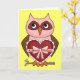 Sweet well greeting card with a cartoon art design. Colorful cover fea rose / brown owl with a red heart wrapped in a pink bow with white lace trim. Looks like a box of candy or chocolates. Cute owl on a tree branch. Small green leaves with heart-shaped pink flowers. Personnalize ou customize it ! With a little help from my friends at www.scrappindoodles.com From She Wolf Medicine.