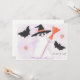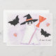 Aquarelle mignonne fantôme rose et violet avec un casquette et balai de sorcière, chauves-souris et maïs bonbon rose et orange