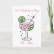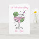 Jolie illustration de gin rose dans un verre avec des bulles, des glaçons, des tranches de citron vert et une baguette mélangeuse dans des couleurs pastel délicates. Personnalisez facilement cette carte en modifiant le texte du modèle. Les messages disent actuellement « Que la Saint-Valentin commence » et à l'intérieur « Joyuse Saint-Valentin ». Merci d'avoir consulté mes créations !