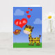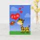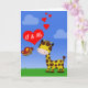 Une illustration mignonne et colorée avec une girafe et un papillon avec des cœurs rouges.