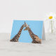 Carte personnalisée représentant deux girafes, cou à cou, dans un câlin affectueux sur un ciel bleu vif. Vous pouvez facilement personnaliser le message à l'intérieur (initialement réglé sur "Câlin et bisous"). Photo prise à San Diego, Californie.