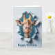 Carte Giraffe Anniversaire Pose à travers un trou de pap