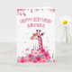 Carte Giraffe rose et gâteau floral Anniversaire