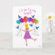 Petite queue de cheval blonde, ses ballons colorés en forme de coeur la portent haut dans le ciel. Entourée de bleuets chantant, elle espère devenir la Saint-Valentin de quelqu'un. Parfait pour les grands-parents et les parents à envoyer aux enfants, ou les enfants donner à leurs amis.