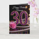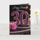 Celebrate a milestone 30th birthday in style with this luxurious and sophisticated greeting card. The front features a dazzling number "30" encrusted in brilliant amethyst purple gemstones and set in gold, complemented by a soft pink rose and elegant strands of white pearls against a sleek black background. This high-glamour look is perfect for the woman who loves sparkle, elegance, and all things luxury. The interior includes a heartfelt message wishing the recipient a dazzling decade filled with love and unforgettable moments. Whether for a sister, daughter, or best friend, this design makes a stunning keepsake for a "true gem" turning thirty.