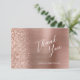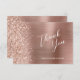Cette élégante carte de remerciements moderne à mariage plat dispose d'une bordure en parties scintillant de diamant sur un arrière - plan rose en métal brossé en faux or. Le texte est en écriture manuscrite moderne et sans serif police, avec des espaces pour les noms et réponses des invités. L'envers présente une conception rose en métal brossé et en parties scintillant.