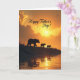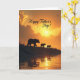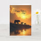 This design shows a glowing sunset spilling fiery orange, deep gold, and soft amber across a calm stretch of water, with dramatic clouds lit from behind. Along the dark, rugged shoreline in the lower half, a large bear walks ahead of two smaller bears, their silhouettes close enough to suggest a protective bond 👨. The trio’s steady pace and the way the youngsters trail near the adult’s side adds a quiet sense of closeness, like a gentle family moment. Above them, tiny birds scatter across the bright sky, bringing movement to the wide-open scene. The water reflects the sun’s light in shimmering streaks, with ripples slightly warping the mirrored colors and the shadowy land. Near the top, the greeting “Happy Father’s Day!” appears in a flowing, cursive-style font in a light tone that stands out against the warm sky 🛠️. The sun sits low as a bright disc near the horizon, and the bears remain in crisp black silhouette against the glowing band of light.