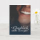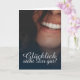 Glücklich steht Dir intestin ! Kompliment Karte mit lachendem Frauengesicht und handschriftlichen Grüßen auf der Vorderseite der Karte. Restliche Flächen stehen zur freien Verfügung.