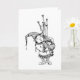 dessin vintage de gnome à face ronde jouant un ensemble de cornemuses surdimensionnées.