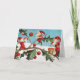 Illustration amusante et vintage de Noël de petits gnomes barbus habillés comme le Père Noël, peignant des baies de houx dans la neige. Publié par L. Prang & Co.
