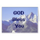 Carte Dieu Béni Vous avec des montagnes recouvertes de neige bleue sur le devant. L'intérieur dit : "Que l'amour du Seigneur soit toujours avec vous." Sur le dos, on peut lire "Ayez foi".