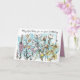 May God bless you on your birthday greeting card decorated with a garden of wildflowers including daisies, heather, clover, and more hand drawn with ink and colored pencils. On the inside is a coordinating shade of mauve and text you can edit to fit your needs.