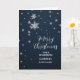Joyeux Noël pour godson et sa carte de famille avec des flocons de neige modernes motif sur un ciel bleu marine.