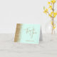This elegant modern wedding thank you card features a border of gold faux glitter on a mint green background. The customizable text combines the words "Thank You" in gold-colored handwriting script and the names of the couple in italic font.