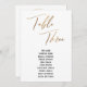 Cette conception simple et élégante est composée de "Table Three", crées dans une police d'écriture moderne et ornée d'un effet d'or immétallique. La police des noms peut être modifiée si vous le souhaitez. Comme la couleur arrière - plan. Les détails apparaîtront à l'avant et à l'arrière. // 151 //