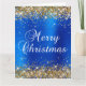 Format vertical fausse parties scintillant dorée brillant avec un faux graphique d'art numérique royal bleu christmasse brillant. La couleur de la calligraphie classique Joyeux graphisme de Noël peut être changée. Ou, si vous préférez créer votre propre salutation de vacances à l'extérieur, vous pouvez supprimer l'image de typographie et remplacer par du texte du système. Couleurs de vacances en or et bleu saphir clair. Ce sont de beaux graphismes, mais toute la brillance scintille et brille dans les impressions graphiques comme une photo. Vous pouvez couper et coller différentes lettres personnalisées pour différentes familles et amis et commander les cartes séparément.