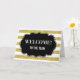 Bienvenue sur la carte de l'équipe pour les nouveaux employés avec des rayures de parties scintillant dorée motif et des détails noir et blanc.