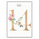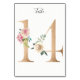 Numéro d'or avec carte de numéro de table de la table d'ornements fleuris pastel. Personnalisez le style, la taille et la couleur de la police de texte.