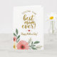 Designed with a bright white background, this card centers on a large golden message with a lightly textured shine that draws the eye and feels like a warm embrace ❤️. Smaller lines of matching gold text sit nearby, arranged to guide you smoothly from the main words to the supporting message. Just beneath the central lettering, a rich red heart rests with fine rays fanning outward, like a quiet pulse of affection between close friends. Tiny gold speckles scatter around the heart, adding a soft celebratory shimmer without crowding the space. Along the bottom edge, a garden-like border of flowers curls inward, mixing soft coral-pink blooms with creamy ivory petals and deep, dark centers. Layers of green leaves—some broad and deep emerald, others thin and sage-toned—thread between the blossoms, giving the border a cozy, gathered-together feel 🌼. The gold text stays concentrated in the upper and middle area, leaving the floral border to anchor the design below. The final detail is the botanical trim stretching across the lower edge with coral and ivory flowers nestled among emerald leaves and slender sage sprigs.