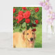 Cette carte présente une photo d'un chien de repérage d'or sous un rosier rouge. Le texte intérieur dit : "Pensez à vous", mais cela peut être modifié ou supprimé pour répondre à vos besoins.