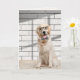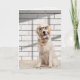 Chien de repérage d'or avec lunettes noires et cravate à damiers sur brique pour papa sur Fête des pères.