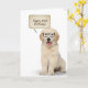 Un mignon chiot récupérateur d'or portant des lunettes sur blanc avec bulle vocale pour 86ème anniversaire. L'âge d'anniversaire peut être modifié.