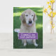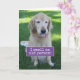 Photo amusante d'une Golden Retriever (Riley) qui sort sa langue et pleure parce qu'elle sent une vieille personne. Il se trouve que c'est la personne qui tient cette carte. Joyeux anniversaire, vieux chien ! Carte amusante pour vos vieux amis ou votre famille qui aiment le chien.
