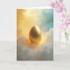 This design shows a single golden egg floating in the middle of a sky filled with layered clouds, drawing your eyes straight to its glowing shape 🌷. A strong amber light behind it spreads outward like a soft halo, making the scene feel intimate, as if the sky is leaning in close to admire it. The egg’s surface looks slightly textured, like gently hammered metal, catching highlights along its curves. Around it, clouds shift from warm oranges and golds near the light to cooler whites, grays, and hints of pale cyan farther out, creating a calm-to-warm gradient that feels like a quiet embrace. There are no characters, but the way the clouds cradle the egg suggests a tender, protective closeness, like a shared secret between friends 🐇. Any greeting text would sit best along the lower edge in small, light-colored lettering so it stays readable against the darker cloud bands. The brightest glow sits just behind the egg, with soft shadowed cloud edges framing it on both sides.