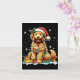 Carte Goldendoodle Christmas Santa Hat Fairy Lights Paja