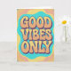 Fun quote text groovy 70s style typography with text good vibes only design.