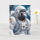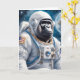 Gorille en costume d'astronaute prêt à voyager vers des lieux inconnus sur cette carte de vœux vierge.
