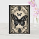 De beaux papillons noirs sont superposés sur un cadre noir et ivoire orné, contre un arrière - plan noir, sur cette belle carte d'anniversaire Goth.
