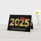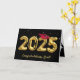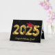 Ballons en feuille d'or pour la graduation 2024 sur un arrière - plan noir avec un casquette rouge et des confettis d'or. La couleur noire de l'arrière - plan peut être changée.