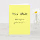 Celebrate the achievement of your loved one or friend with this graduation card! The front of the card reads: "YOU THINK," followed by "therefore you are..." Opening the card, the wording continues: "A GRADUATE! Congrats!" The message is a play on the philosopher René Descartes' famous phrase "Je pense, donc je suis [I think, therefore I am]" ("cogito ergo sum"). The card is yellow, and the message is in black handwritten-style lettering; customize with other colors if you wish. Perfect for grads from high school, college, or graduate school!
