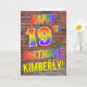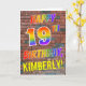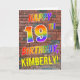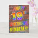 La façade de cette carte de voeux captivante, excitante et vibrante sur le thème de l'anniversaire comprend le message "HAPPY 19TH BIRTHDAY" avec des lettres ayant un arc-en-ciel multicolore comme un motif dégradé, et un nom modifiable couleur jaune, sur un arrière - plan motif mur en brique. L'aspect est inspiré de celui des graffitis ou de l'art de rue dessinés sur les murs. L'intérieur comporte un message d'anniversaire personnalisable. Une carte de voeux d’anniversaire heureuse, amusante et personnalisée comme celle-ci pourrait être une façon spéciale de célébrer le 19e anniversaire de quelqu’un. [~Z0000357]