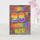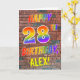L'avant de cette carte de voeux passionnante, vibrante et amusante à thème d'anniversaire comprend le message "HAPPY 28TH BIRTHDAY" avec des lettres ayant un arc-en-ciel multicolore comme un motif dégradé, et un nom personnalisé jaune, sur un arrière - plan motif mur en brique. Le style s'inspire de celui des graffitis ou de l'art de rue dessinés sur les murs. L'intérieur est doté d'un message d'anniversaire personnalisé. Une carte de voeux d'anniversaire heureuse, amusante et customisée comme celle-ci pourrait être utilisée pour envoyer un message d'anniversaire à quelqu'un célébrant son 28e anniversaire. [~Z0000357]